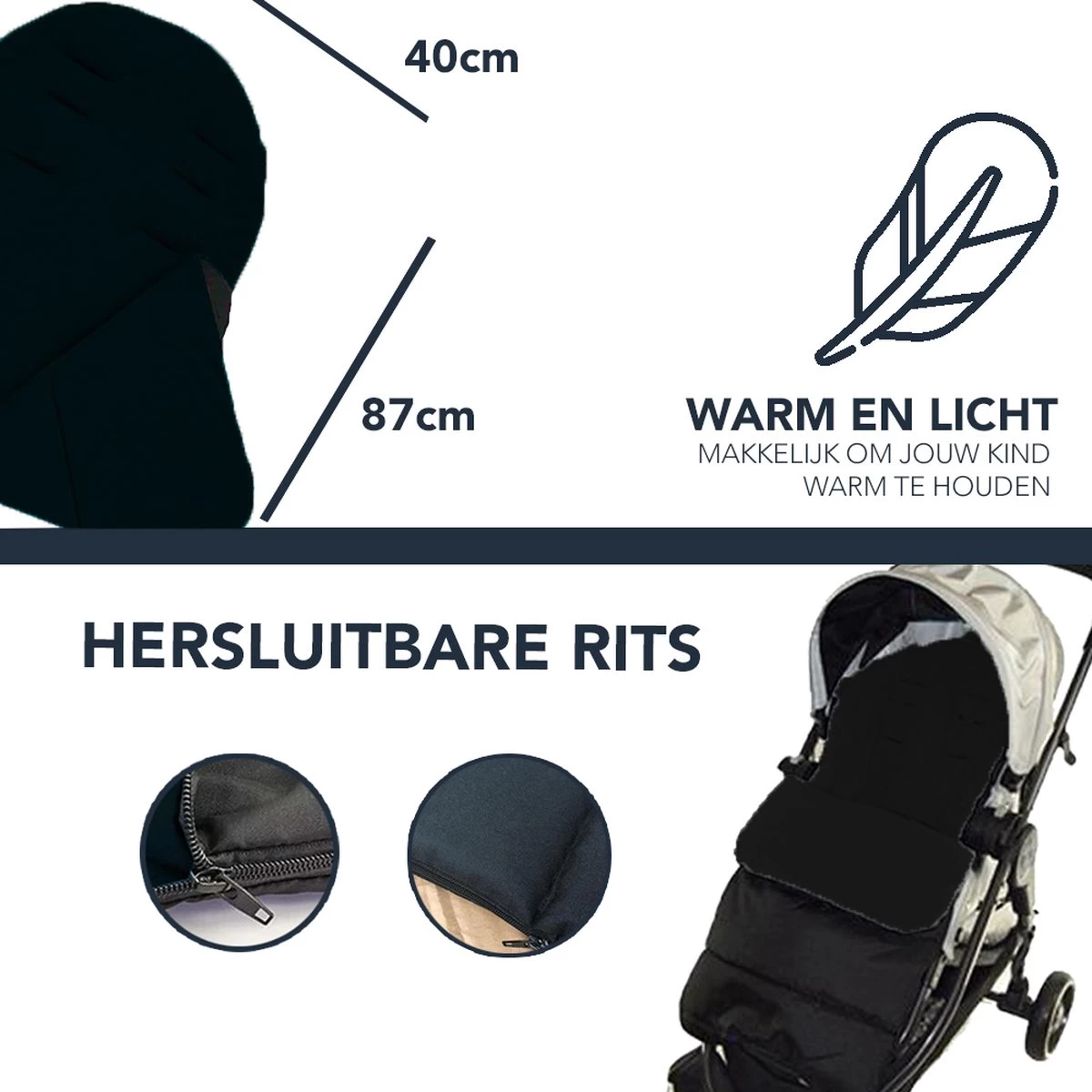 De buitenkant van de voetenzak is gemaakt van waterafstotend materiaal en de binnenkant is gevoerd met een heerlijk zachte teddy fleece stof voor extra warmte en comfort. Dit maakt de voetenzak niet alleen waterbestendig, maar ook winddicht – dubbel profiteren dus!