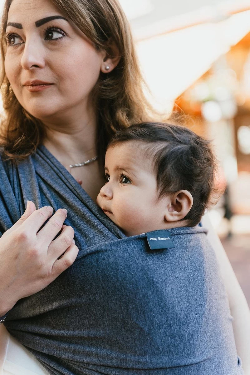 Deze comfortabele draagdoek is geschikt voor pasgeboren baby’s tot 4 jaar (gewicht 2.5 kg tot 18 kg), zorgt voor perfecte balans en verdeling van het gewicht over de schouders en de gehele rug van de drager. Wat maakt deze draagdoek van Baby Garden uniek? De draagdoeken van Baby Garden zijn gemaakt van 95% zacht maar toch stevig katoen in combinatie met 5% elastaan. Dit zorgt voor flexibiliteit, ultieme draagcomfort en de draagdoek behoudt zijn vorm waardoor het langer mee gaat dan de gewone draagdoek! Op de productafbeelding kunt u zien dat de draagdoek zich perfect aan de lichaamspositie aansluit en het kindje die ook wat ouder is nog steeds stevig en veilig gedragen wordt.