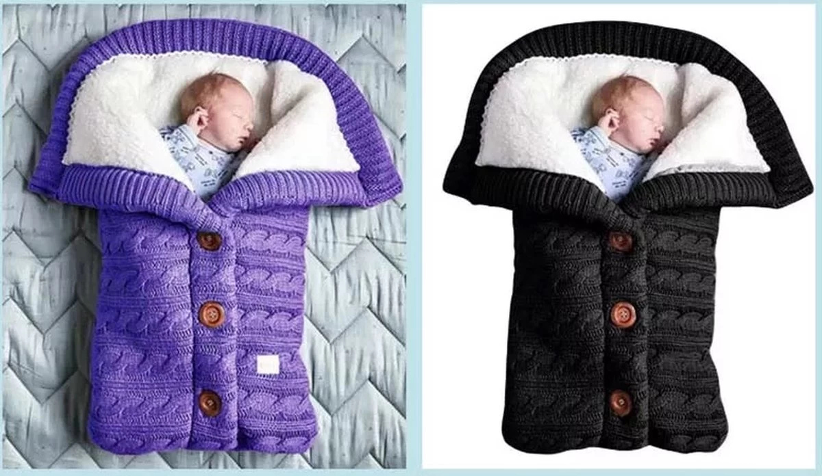 Deze leuke gebreide baby slaapzak is helemaal in. Sluit de baby slaapzak gemakkelijk dicht met de knopen aan de zijkant. De slaapzak is gemakkelijk wasbaar op 30 graden en is uitermate geschikt als kraamcadeuau voor jongens en meisjes. Gebruik de baby deken van BonBini’s ook als wandelwagen deken of als babydekentje het gehele jaar door.