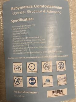 Baby Matras Mels – 100% Micropercale – Open Cel Ademend – Anti Verstikkend – Kindermatras 60×120 Cm