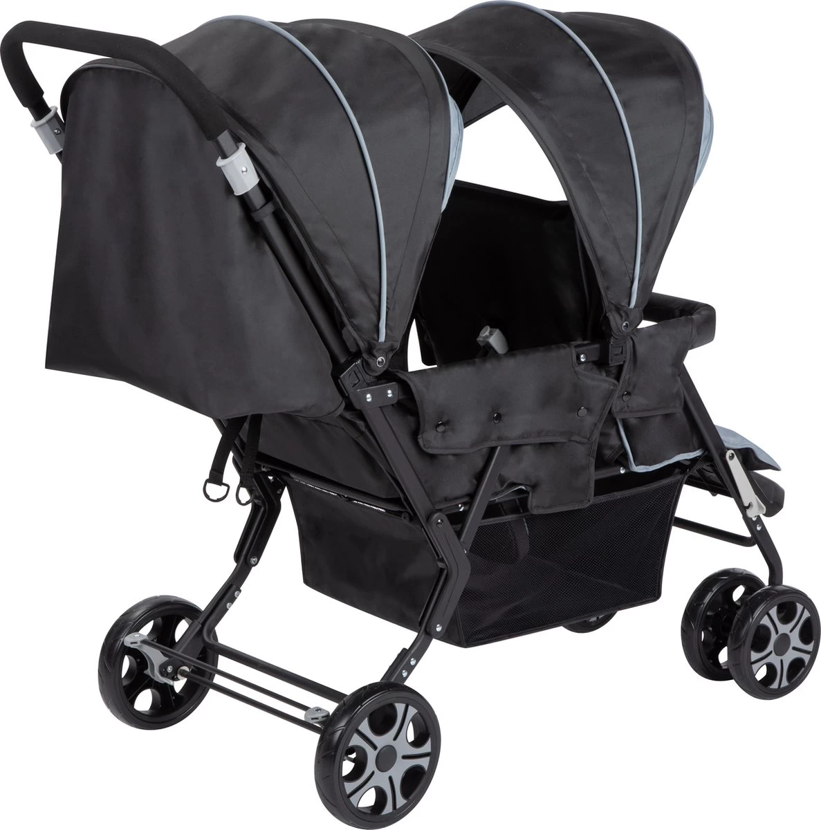 Met de Bebeconfort Teamy kunnen kinderen van ongeveer dezelfde leeftijd comfortabel reizen. Pasgeborenen kunnen liggend achterin slapen, terwijl oudere kinderen de wereld voorin ontdekken. Zowel de zittingen als de voetensteunen zijn verstelbaar voor maximaal comfort. Dankzij het inklapmechanisme op handhoogte is deze tandem eenvoudig in te klappen. Met zijn lichte gewicht (ongeveer 12,4 kg) en compacte opvouwbaarheid (L110 x B30 x H25 cm), is de Teamy gemakkelijk op te bergen. Volledig uitgerust met 2 schorten en een regenhoes voor een aangename wandeling, ongeacht de weersomstandigheden.