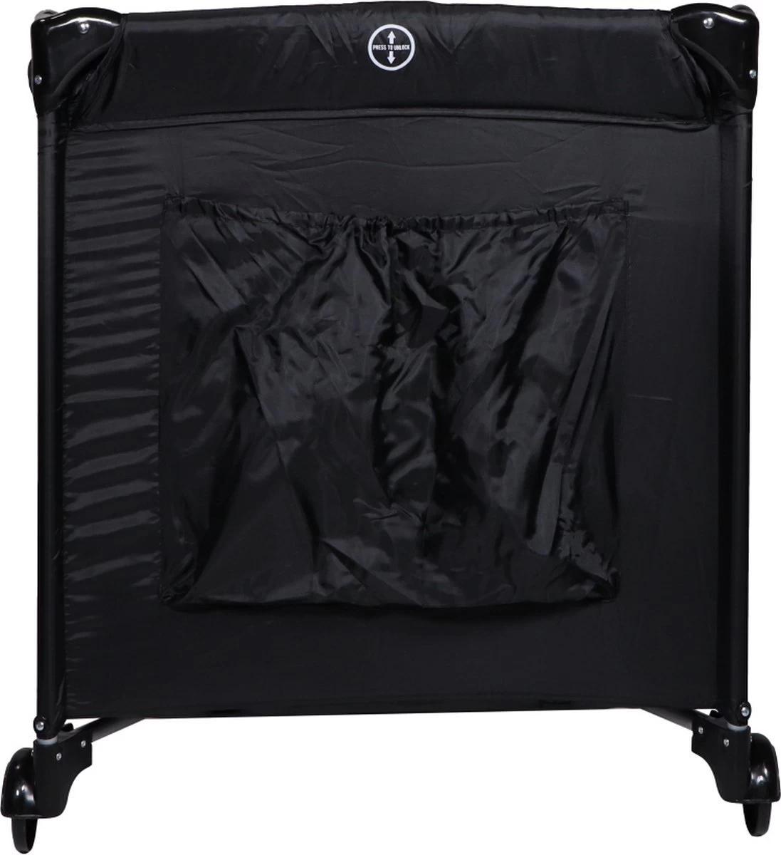 Het Ding Deluxe campingbedje wordt geleverd inclusief een praktische bodemverhoger (te gebruiken tot max. 9 kg). Hiermee verhoog je de bodem van het bedje zodat je niet meer diep voorover hoeft te buigen om je kleintje in en uit het campingbed te tillen. Het MamaLoes Deluxe campingbed beschikt daarnaast over een kruipluik met ritssluiting. Wanneer je dit luikje opent kan je kind zelf in en uit het campingbedje kruipen! Verder heeft het campingbedje een handige opbergzak aan de zijkant en 2 wieltjes (met rem) aan de onderkant zodat je hem eenvoudig kunt verplaatsen.