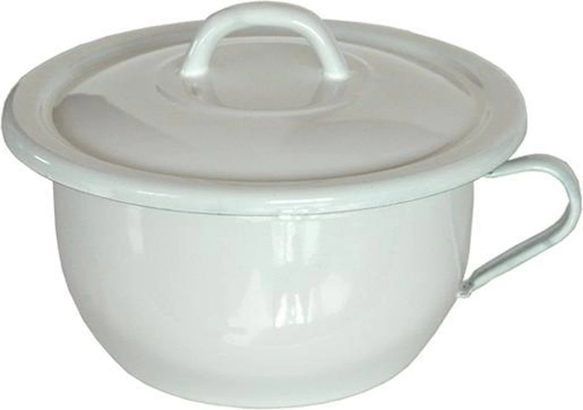Emaille Ouderwets Plaspotje Met Deksel – Wit