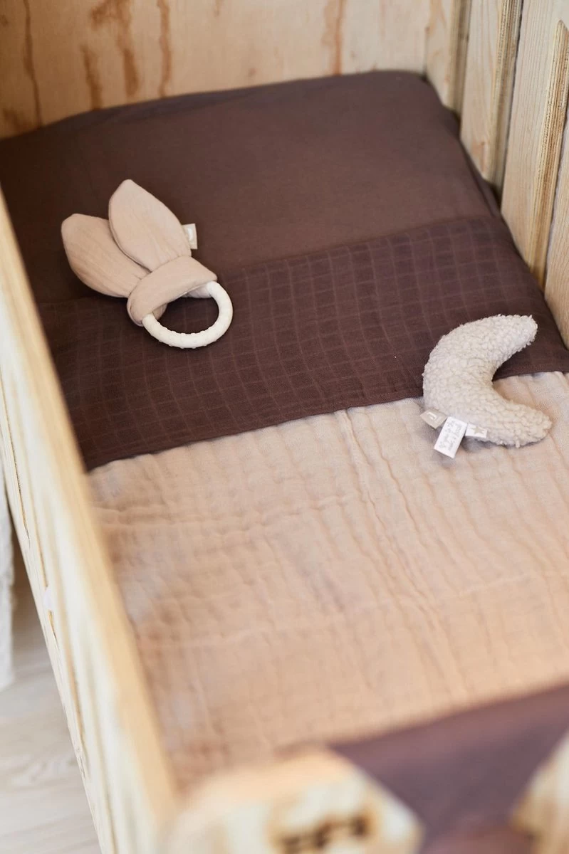 Meerlaagse hydroefiele deken voor wieg en kinderwagen. De luchtige deken in unikleur bestaat uit meerdere lagen hydrofiel katoen en is lekker zacht. Door zijn unikleur past hij leuk bij een hoeslakentje met print, maar ook perfect bij de Spring Knit items.