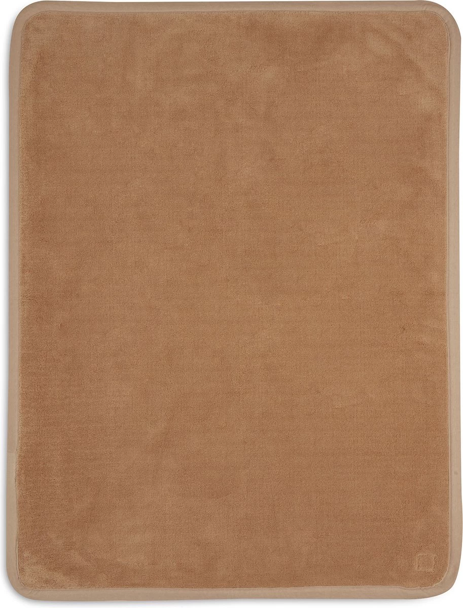 Deze deken heeft een Ivory ondergrond en de beertjes op de print hebben de kleuren Biscuit en Chestnut. De achterkant van het dekentje is gemaakt van fleece in de kleur Biscuit.