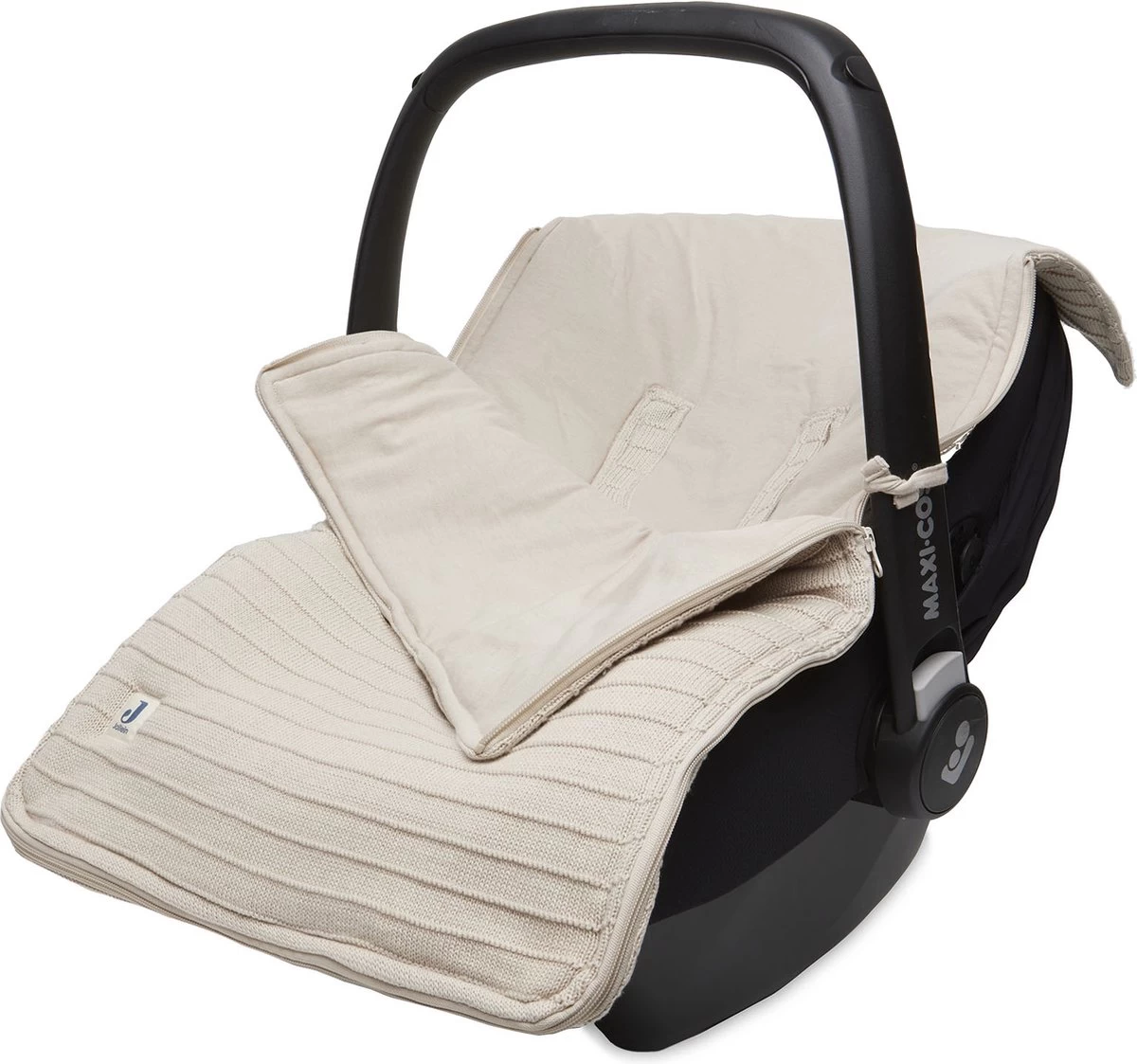 De gebreide stof aan de buitenkant van deze voetenzak geeft het een chique uiterlijk en zorgt er voor dat je baby nog comfortabeler ligt. Een voetenzak is echt een uitkomst. Je baby leg je gemakkelijk in de voetenzak door de zak eerst helemaal open te ritsen. Ook haal je jouw baby makkelijk uit de autostoel door de voetenzak helemaal open te ritsen. Kortom: een super handige comfortbag voor je baby. De voetenzak is voorzien van openingen in de achterkant om het vastmaken van de gordels extra makkelijk te maken. Het is een universele voetenzak voor de Maxi Cosi en elk ander merk categorie 0 autostoeltje met drie of vijfpuntsgordel. Je kunt deze comfortbag ook in de kinderwagen gebruiken. Zo is je baby in een mum warm ingepakt voor de wandeling.