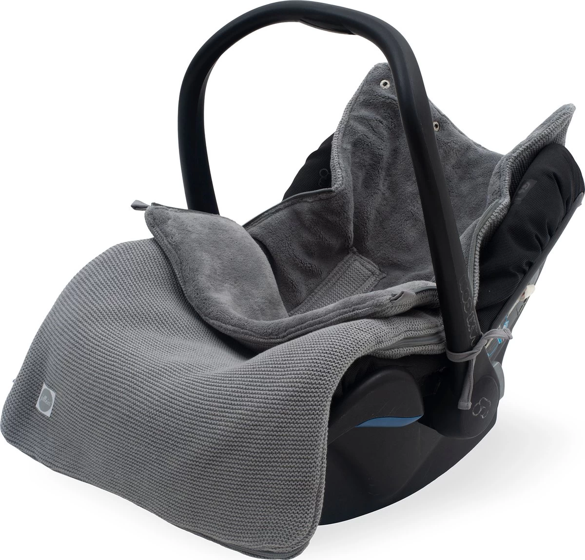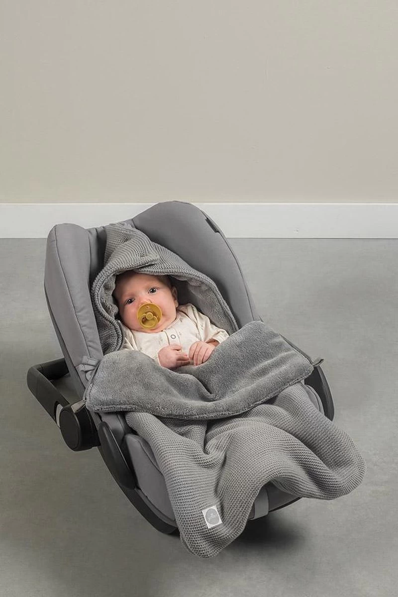 De gebreide stof aan de buitenkant van deze voetenzak geeft het een chique uiterlijk en de ultrazacht fleece aan de binnenzijde zorgt er voor dat je baby nog comfortabeler ligt. Een voetenzak is echt een uitkomst. Je baby leg je gemakkelijk in de voetenzak door de zak eerst helemaal open te ritsen. Ook haal je jouw baby makkelijk uit de autostoel door de voetenzak helemaal open te ritsen. Van de bovenkant maak je met één drukknoopje supersnel een mutsje, zodat ook het hoofdje warm blijft zodra je de autostoel buiten draagt of een wandeling maakt. Om er voor te zorgen dat je baby het in de auto niet te warm krijgt open je de rits van de zak zover als nodig. Kortom: een super handige comfortbag voor je baby. De voetenzak is voorzien van openingen in de achterkant om het vastmaken van de gordels extra makkelijk te maken. Het is een universele voetenzak voor de Maxi Cosi en elk ander merk categorie 0 autostoeltje met drie of vijfpuntsgordel. Je kunt deze comfortbag ook in de kinderwagen gebruiken. Zo is je baby in een mum warm ingepakt voor de wandeling.