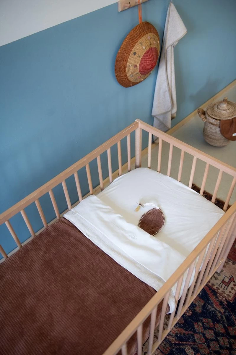 Deze wiegdeken is gemaakt van corduroy en gevoerd met warme, zachte teddy. De lijnen en het reliëf van de stoer toegepaste corduroy doet denken aan het bergachtige landschap van Vik. Maar hoe ruig de bergen in IJsland ook zijn, de stof is daarentegen super zacht en knuffelbaar.