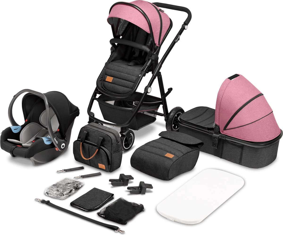 - Een rijke set accessoires – een tas, klamboe, regenhoes, ververskussen, universele adapters, hoes voor wieg en kinderwagen