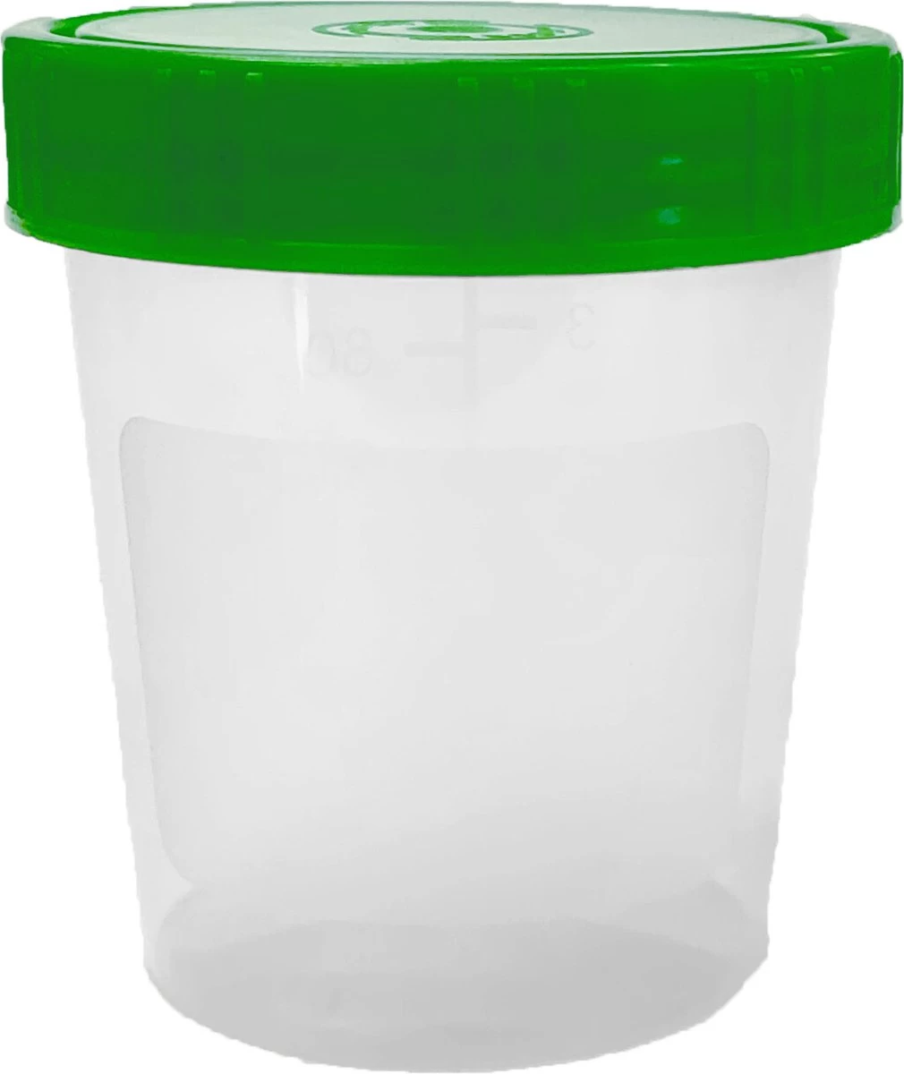 Deze lege potjes worden veel gebruikt als urine container maar zijn ook te gebruken voor bewaren van vele andere vloeistoffen, bijv. als sample / monster potje, de inhoud wordt aangeduid op de buitenkant tot 100 ml. Het potje is van hard kunststof met stevige schroefdeksel. De plastic potjes met deksel zijn te gebruiken voor vele verschillende doeleinde, bijvoorbeeld wanneer u een kleine hoeveelheid vloeistof schoon en veilig wilt bewaren.