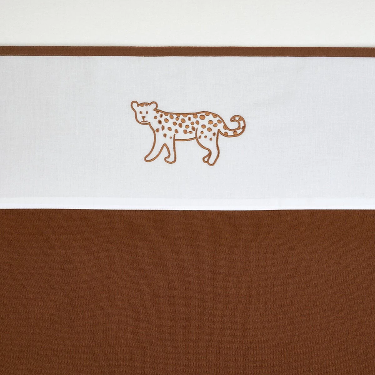 - Met gekleurde bies en geborduurde cheetah op de omslagstrook