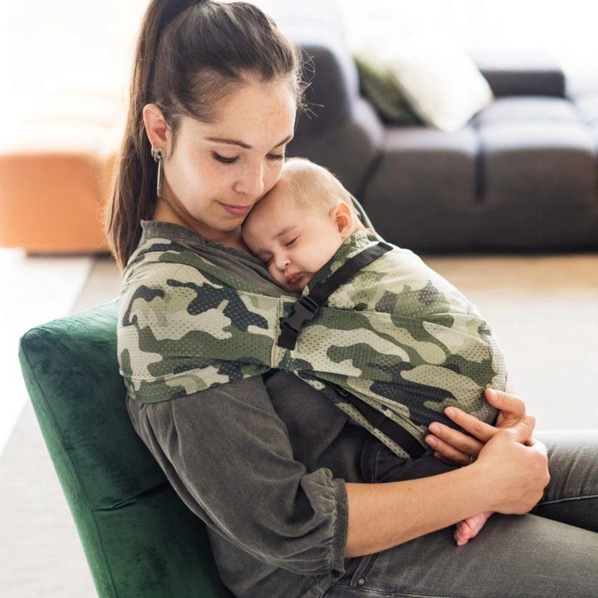 De Mini Sling is getest volgens de EU veiligheidsnorm, hij is ‘One size fits all’ en kan gewassen worden in de wasmachine.