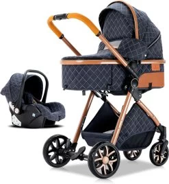MoMi Wandelwagen – Compacte Lichtgewicht Buggy – Estelle – Gray-Gold (geschikt Van 6mnd – 15kg)