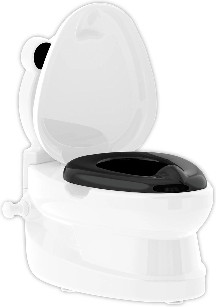 Dit potje heeft een comfortabel en ergonomisch zitje, zodat je kindje altijd goed zit. Omdat hij eruit ziet als een echte wc, helpt het je kindje om later de overstap te maken naar het gebruiken van een ‘grote mensen’ wc! Tevens is het potje voorzien van een wc-rol houder. Wanneer je kindje op het knopje bovenop het potje drukt, maakt hij geluid en geeft hij licht!