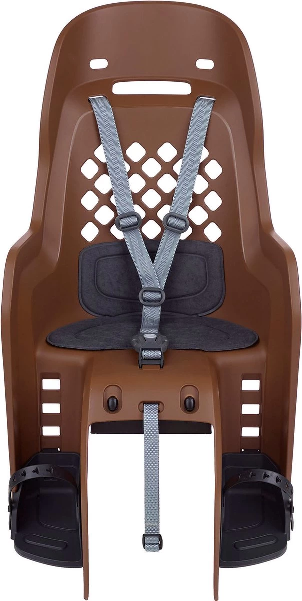 De opvolger van de succesvolle Boodie. De Joy is beschikbaar met bagagedrager- en framebevestiging. Het achterzitje kenmerkt zich door zijn ergonomische vorm met verhoogde laterale bescherming, verstelbare voetsteunen, geïntegreerde spaakafscherming en een reflecterende sticker voor extra veiligheid. De ventilatieopeningen zorgen voor een aerodynamische luchtstroom, ideaal wanneer je zonder kind fietst. De Joy is geschikt voor kinderen van 9 t/m 22 kg. De bagagedragerbevestiging past op ISO 11243 bagagedragers met een breedte tussen de 120 en 175 mm en een buisdiameter tussen 10 en 16 mm. De framebevestiging past op ronde en ovalen buizen met een diameter tussen 28 en 40 mm. De benodigde ruimte voor montage is 80 mm.