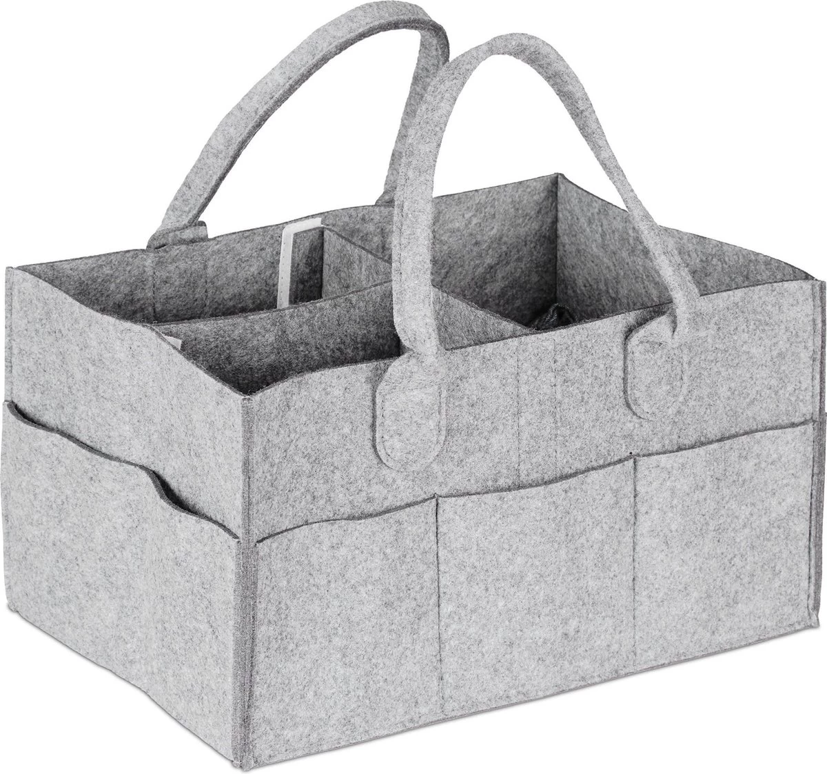 Verschillende baby accessoires kunnen in de vilten luiertas overzichtelijk en grijpbaar opgeborgen worden. 11 vakken bieden genoeg ruimte voor luiers, doekjes, flessen en crèmes voor baby‘s. De grootte van de binnenkant van de verzorgingstas kan je dankzij de uitneembare schotjes naar wens aanpassen. De luiertas kan goed gedragen worden dankzij de 2 hengsels. Hierdoor is hij ook perfect als kofferbak organizer in de auto of als mooie vilttas voor in de woonkamer.
