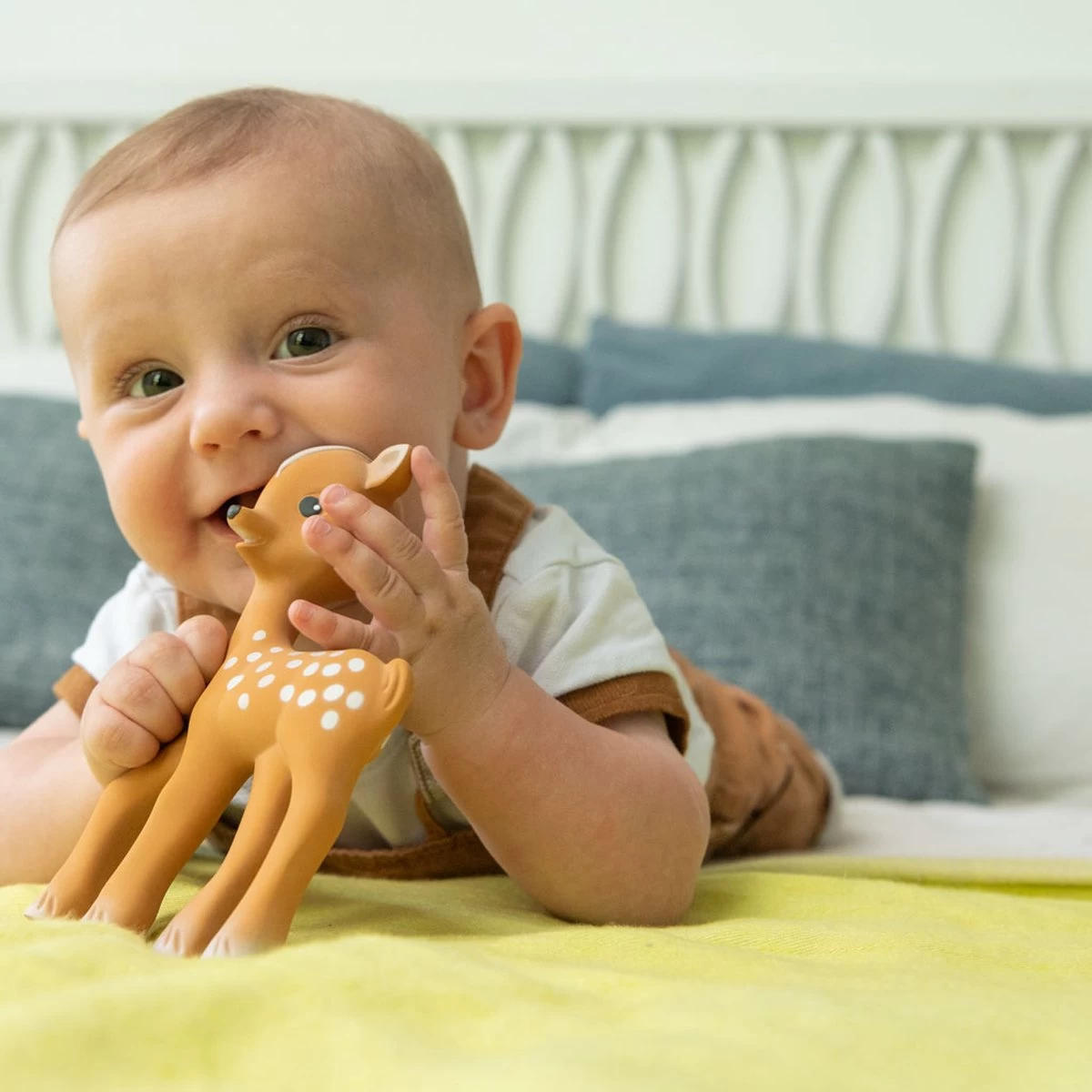 Het eerste hertje gemaakt van 100% natuurlijk rubber afkomstig van de Hevea boom en bewerkt met verf die gebruikt wordt in de voedingsmiddelenindustrie. Hierdoor is FanFan absoluut vrij van schadelijke stoffen zoals PVC, Phthalaten, BPA en andere weekmakers, kortom een veilig en duurzaam speeltje.