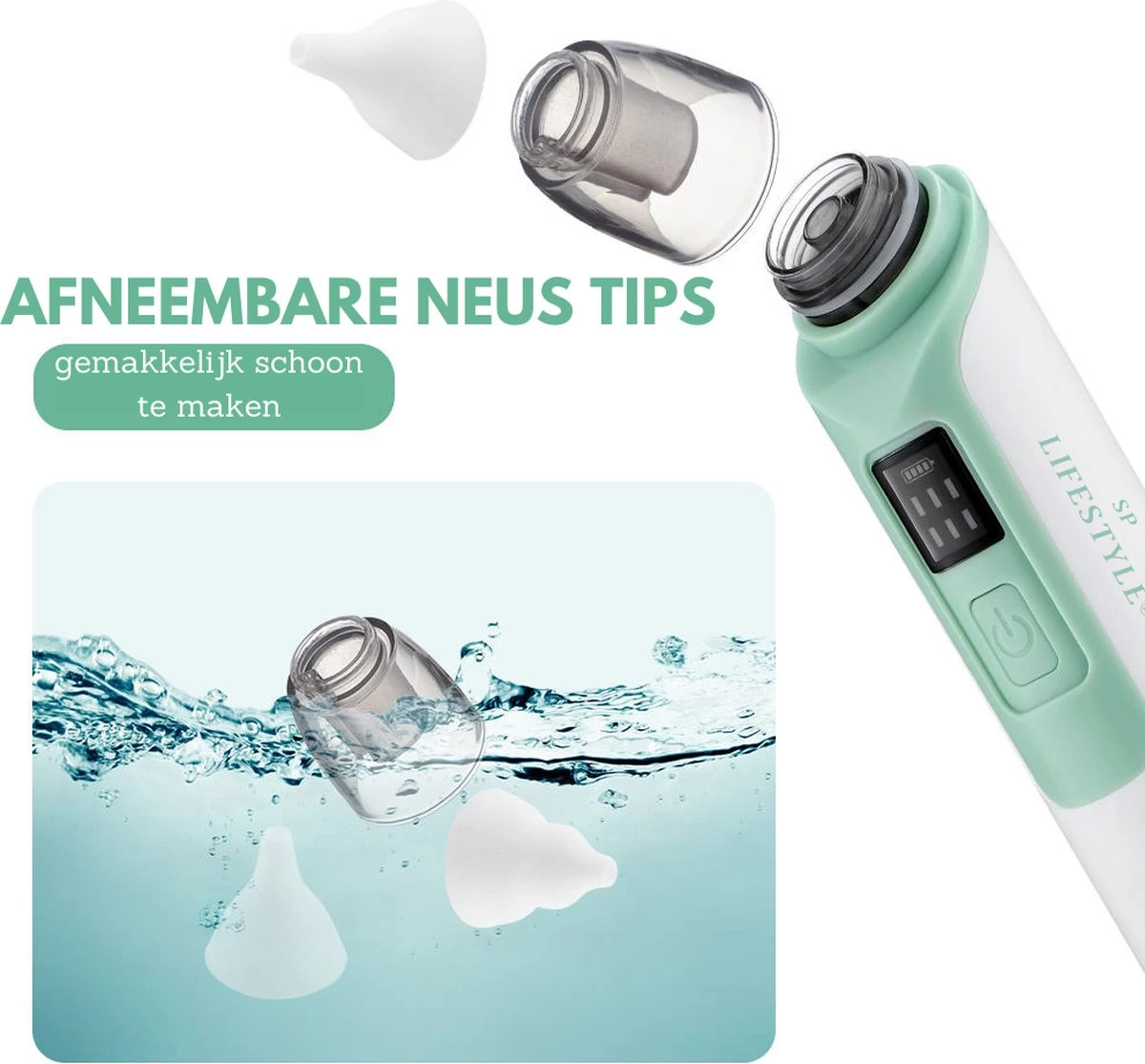 SP-Lifestyle® Neusreiniger baby – Elektrische Neuszuiger met USB – Aspirator – Snotzuiger Baby verzorging – Neuspompje Baby – Neuspeer – Black heads